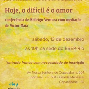 Dia: Sábado, 13 de dezembro, 2025 Horário: 10hs Local: Sede do EBEP-Rio Entrada Gratuita, sem necessidade de inscrição Hoje, o difícil é o amor Partindo de uma fala recorrente de…