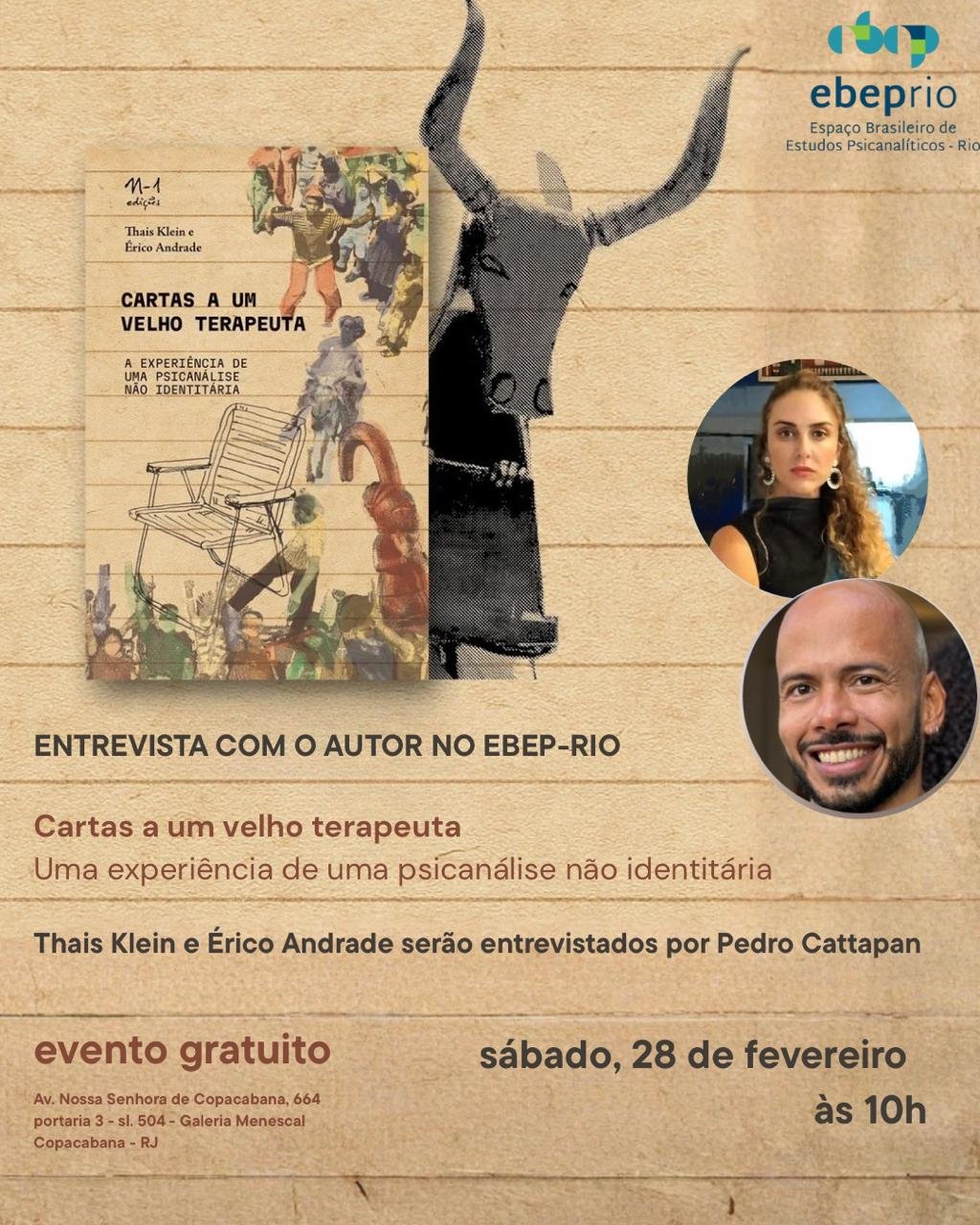 O Ebep-Rio tem o prazer de receber Thais Klein e Érico Andrade para mais um evento Entrevista com o Autor, no dia 28 de fevereiro, sábado, às 10h. Será o momento oportuno para compreender como os dois psicanalistas chegaram à obra e que efeitos podem ser esperados a partir dessa importante provocação.